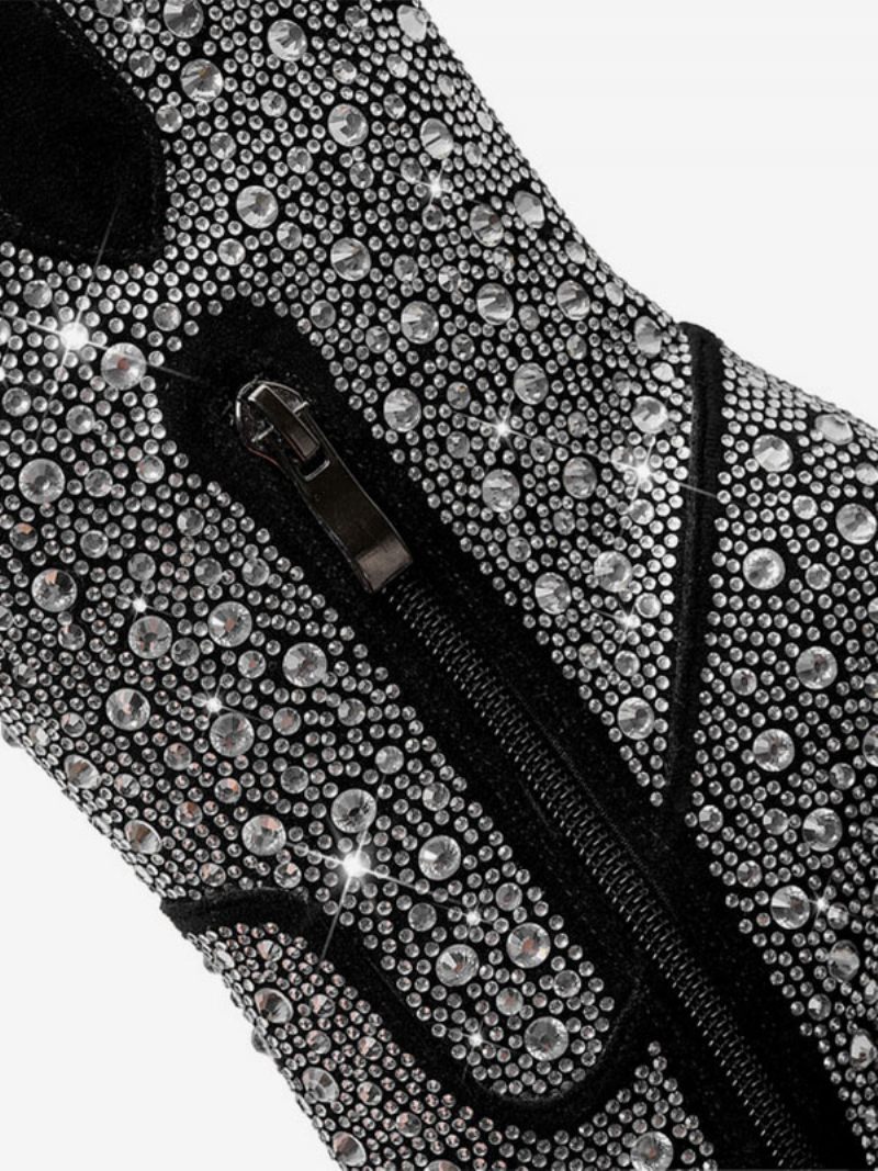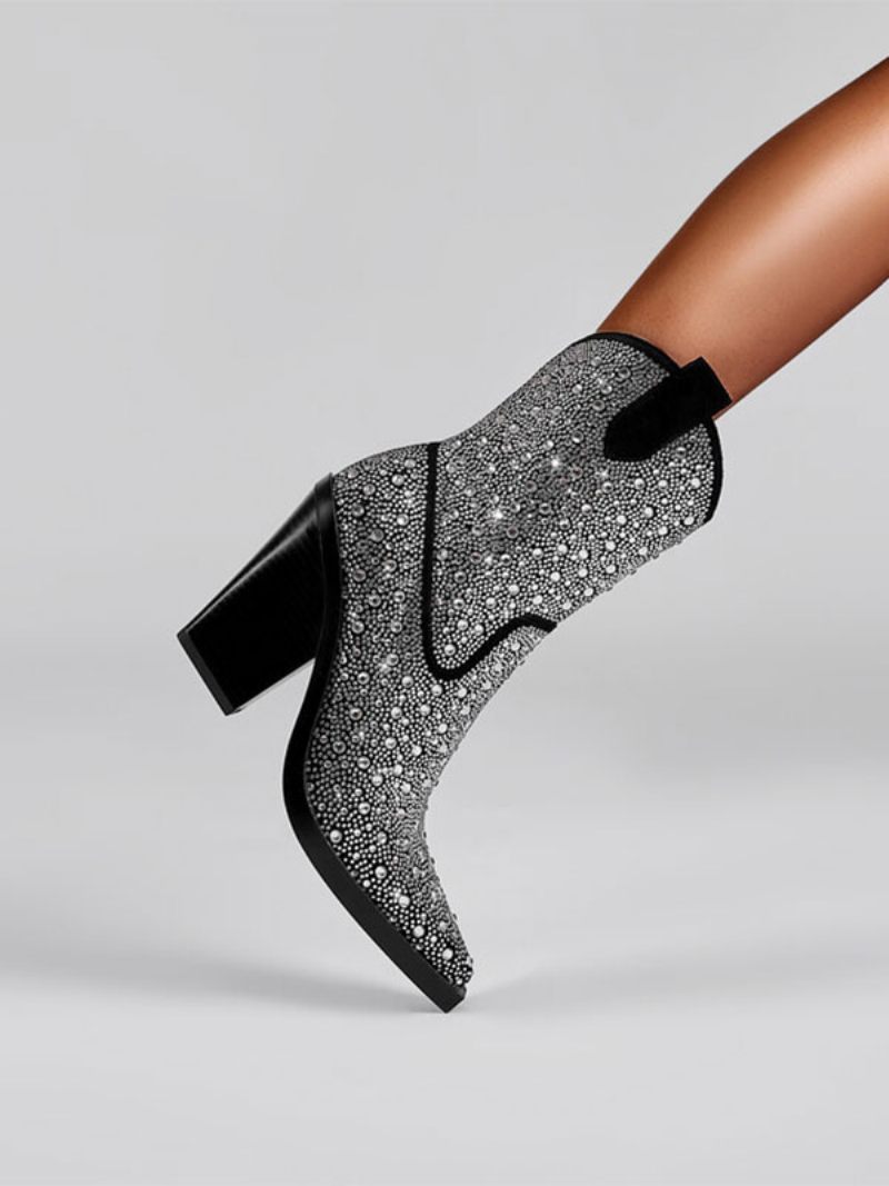 Mustat Länsimaiset Saappaat Naisten Teräväkärkiset Block Heel Sparkly Cowboy-saappaat