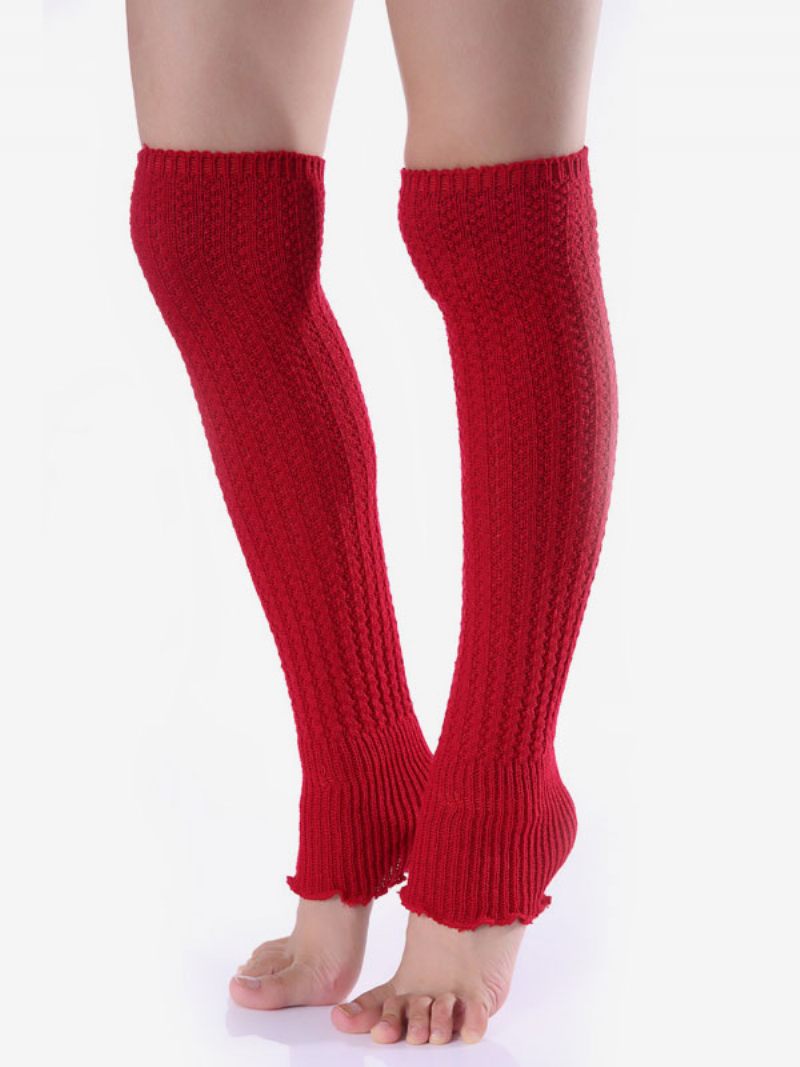 Punaiset Sukat 1 Pari Jalkalämmitteiset Naisten Neulotut Syksyn Talven Tuulenpitävät Kylmänkestävät Saappaan Hihansuut Joogaan
